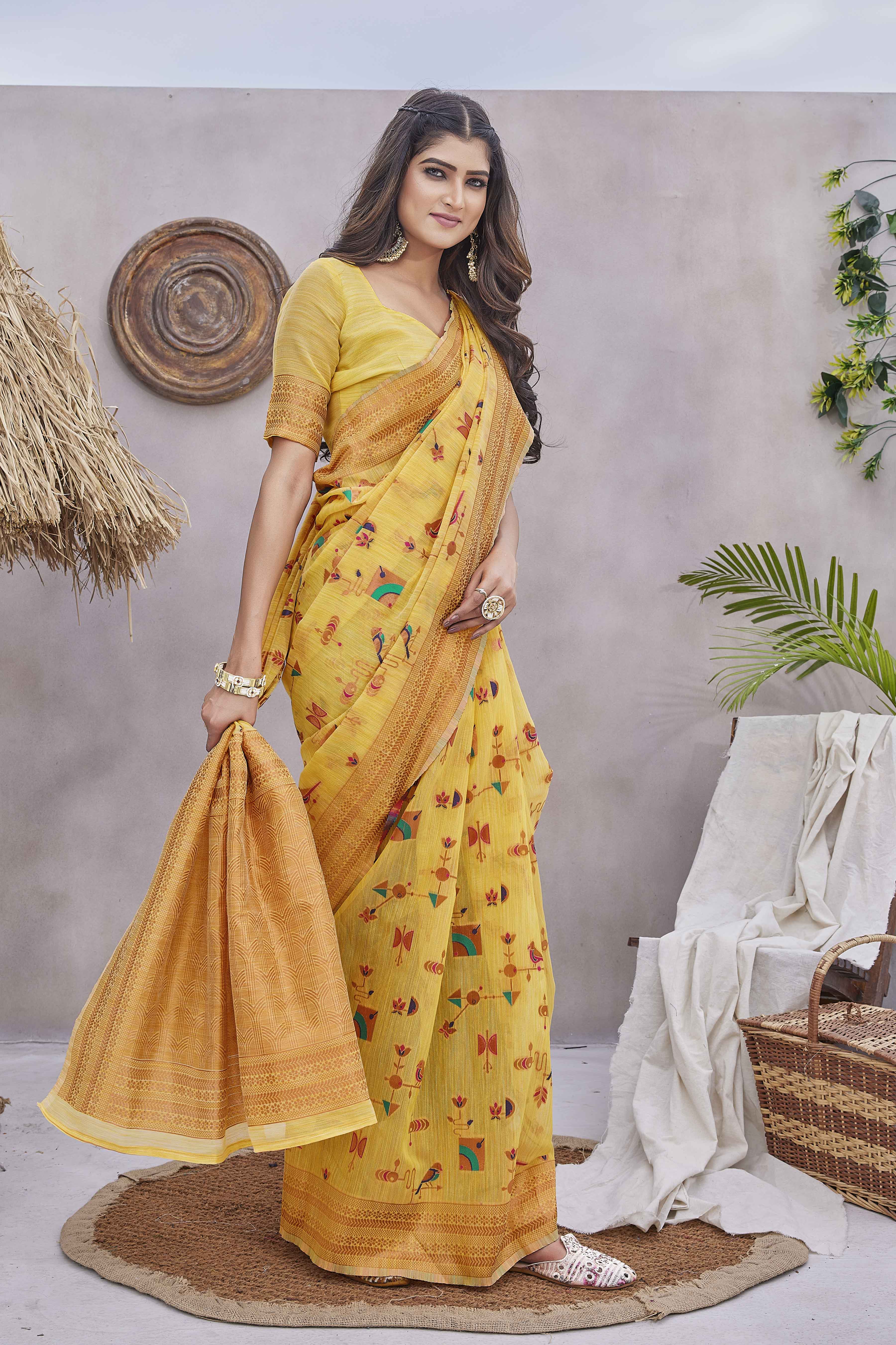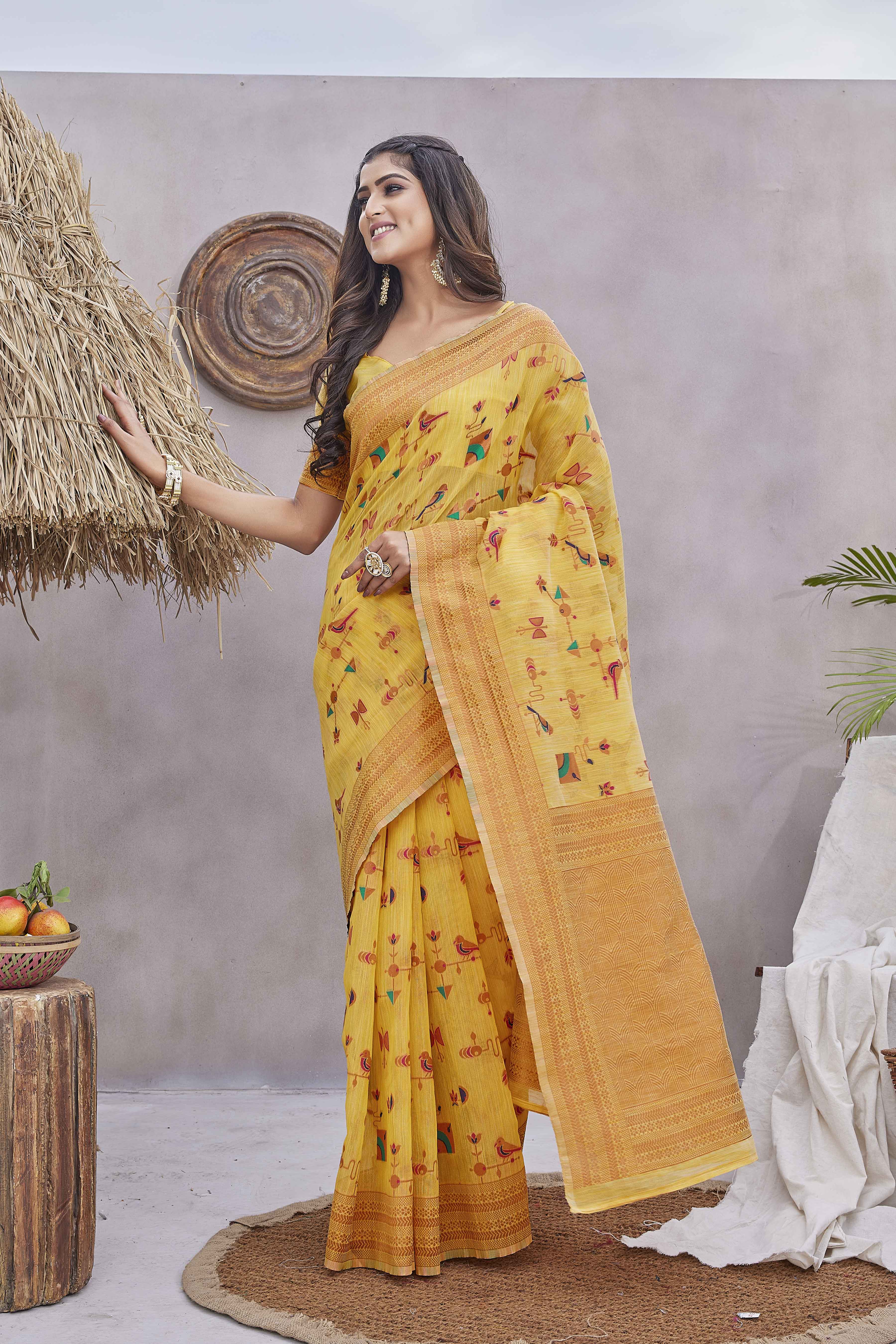 Abstract Printed Woven Design Zari Pure Linen Kanjeevaram Saree