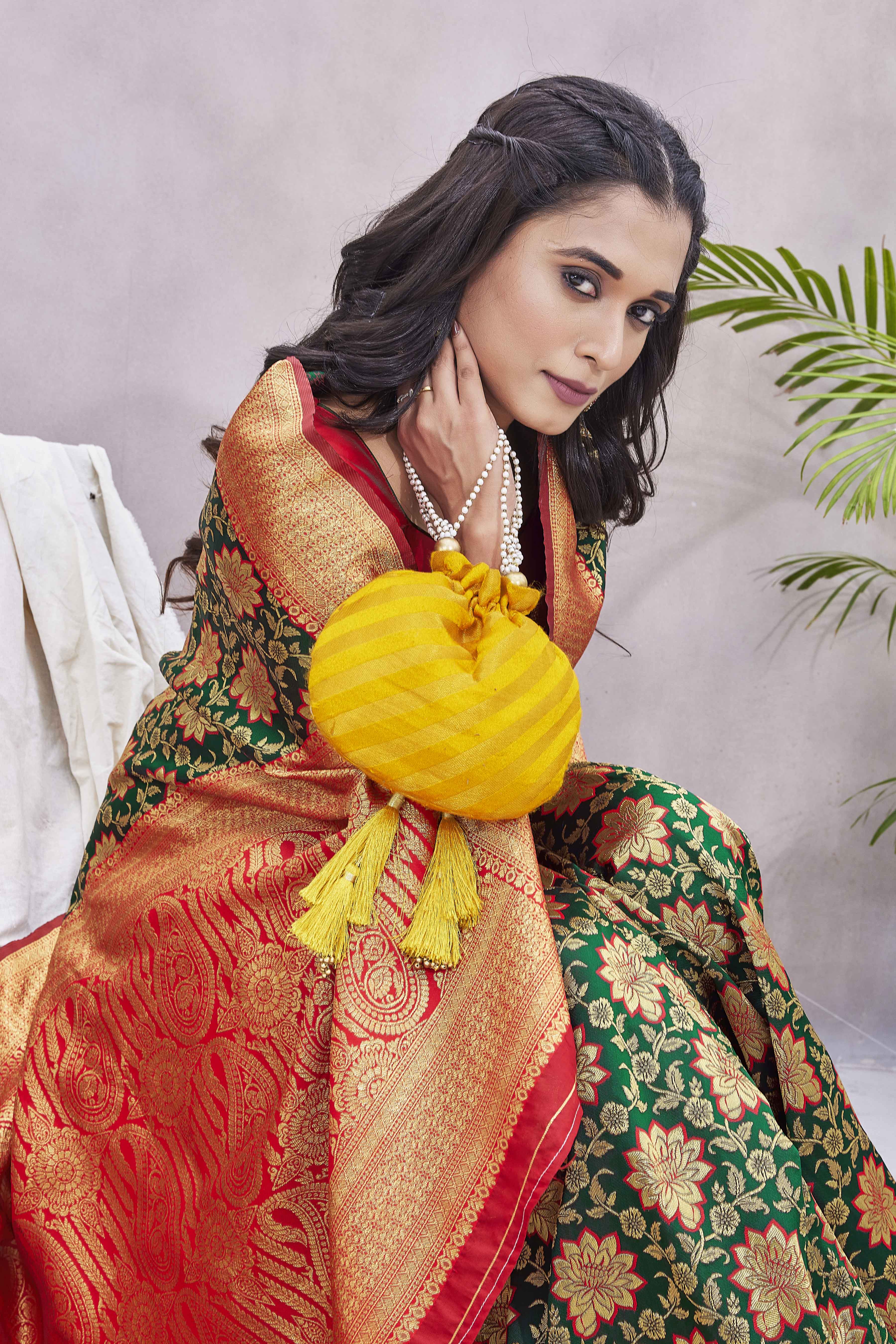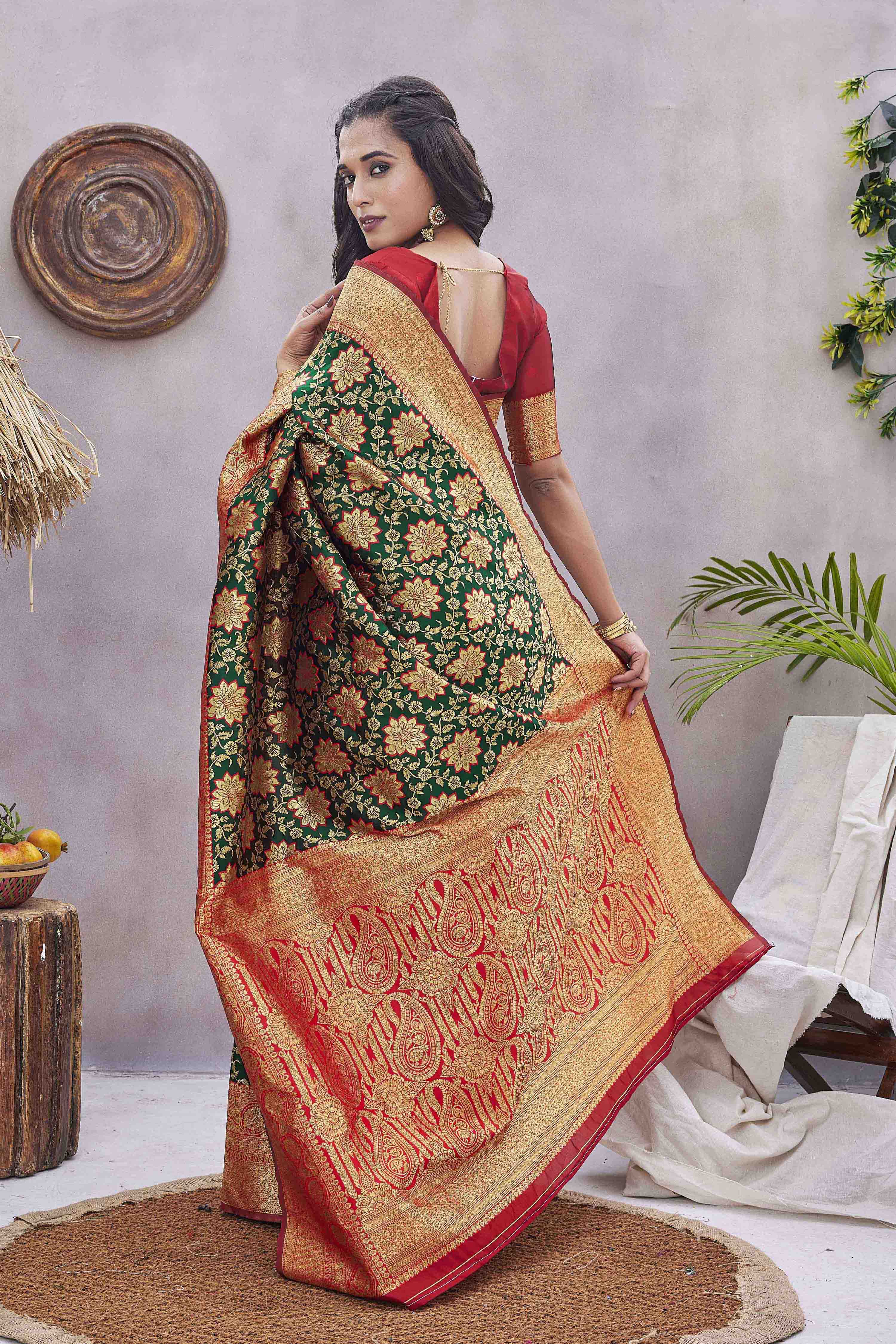 Floral Woven Design Zari Baluchari Saree - Ariya Prints