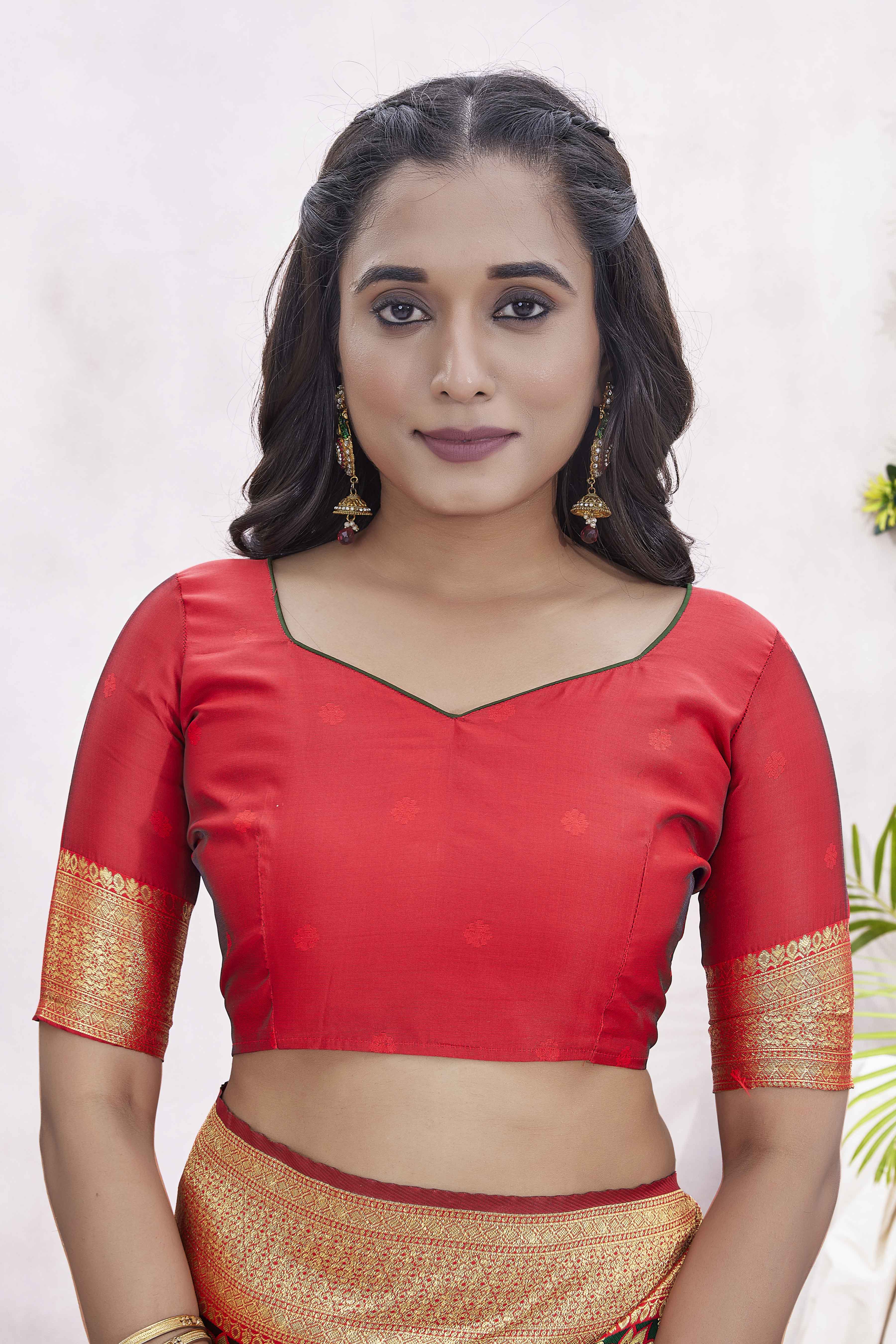 The blouse worn by the model might be for modelling purpose only. Check the image of the blouse piece to understand how the actual blouse piece looks like.