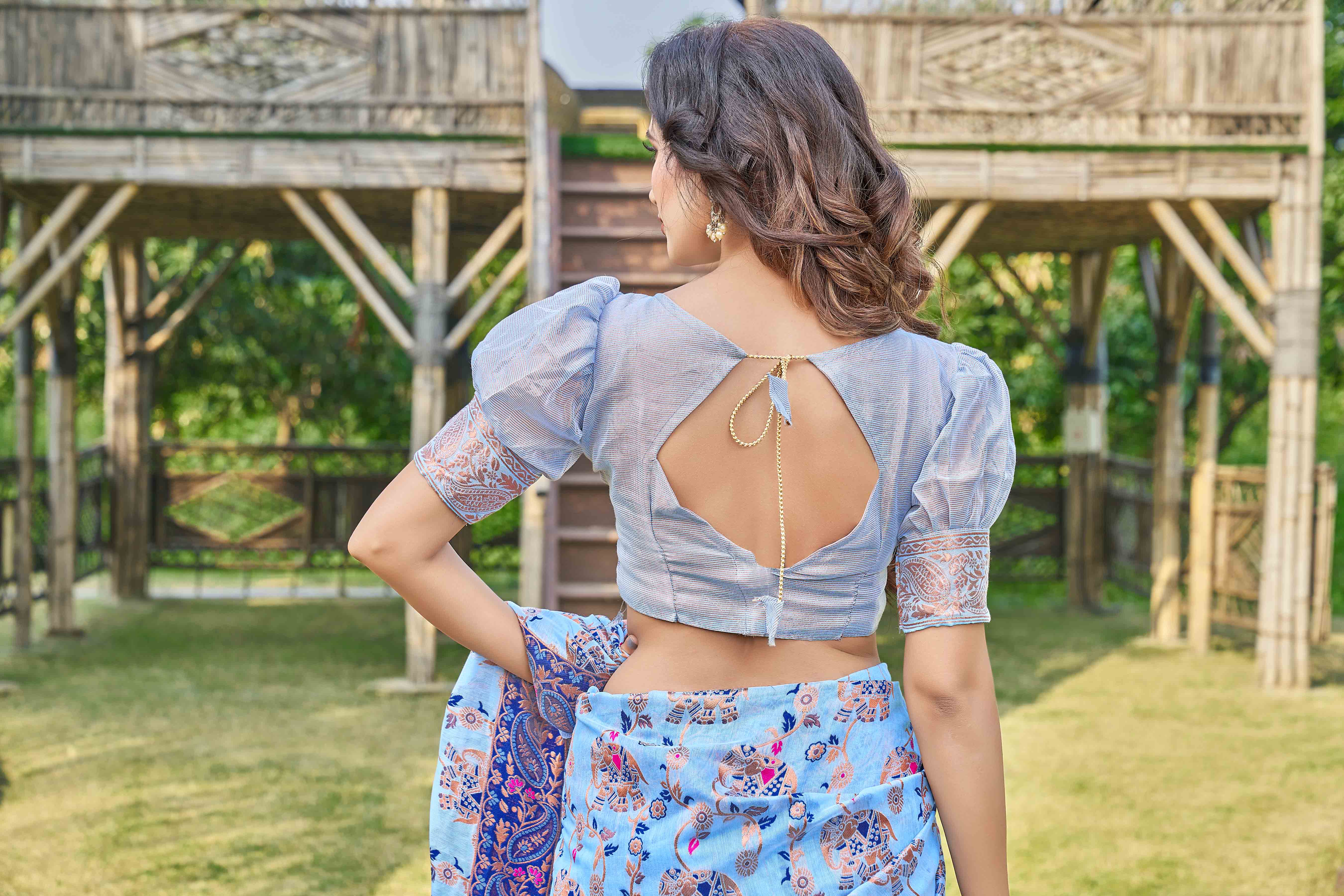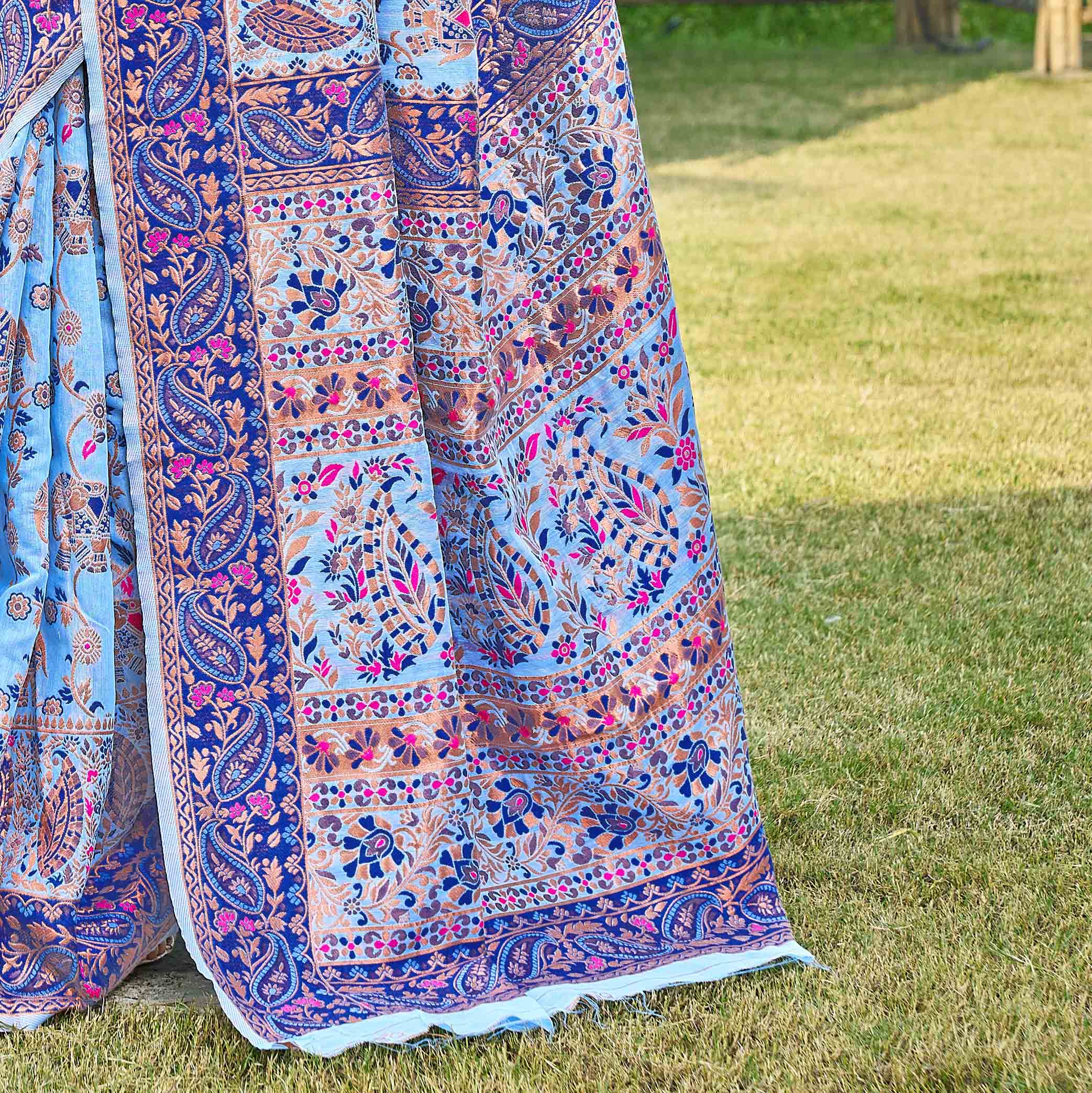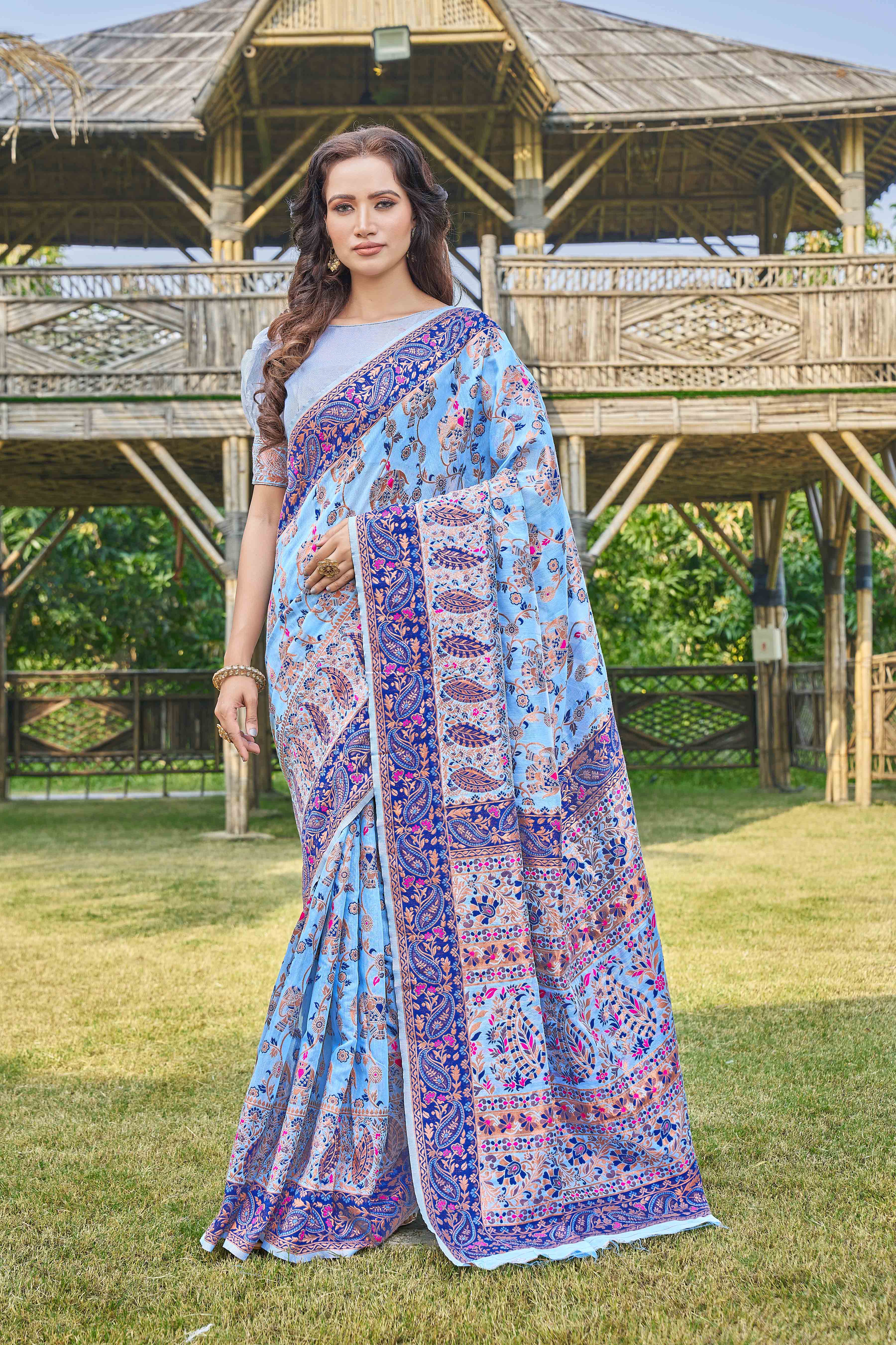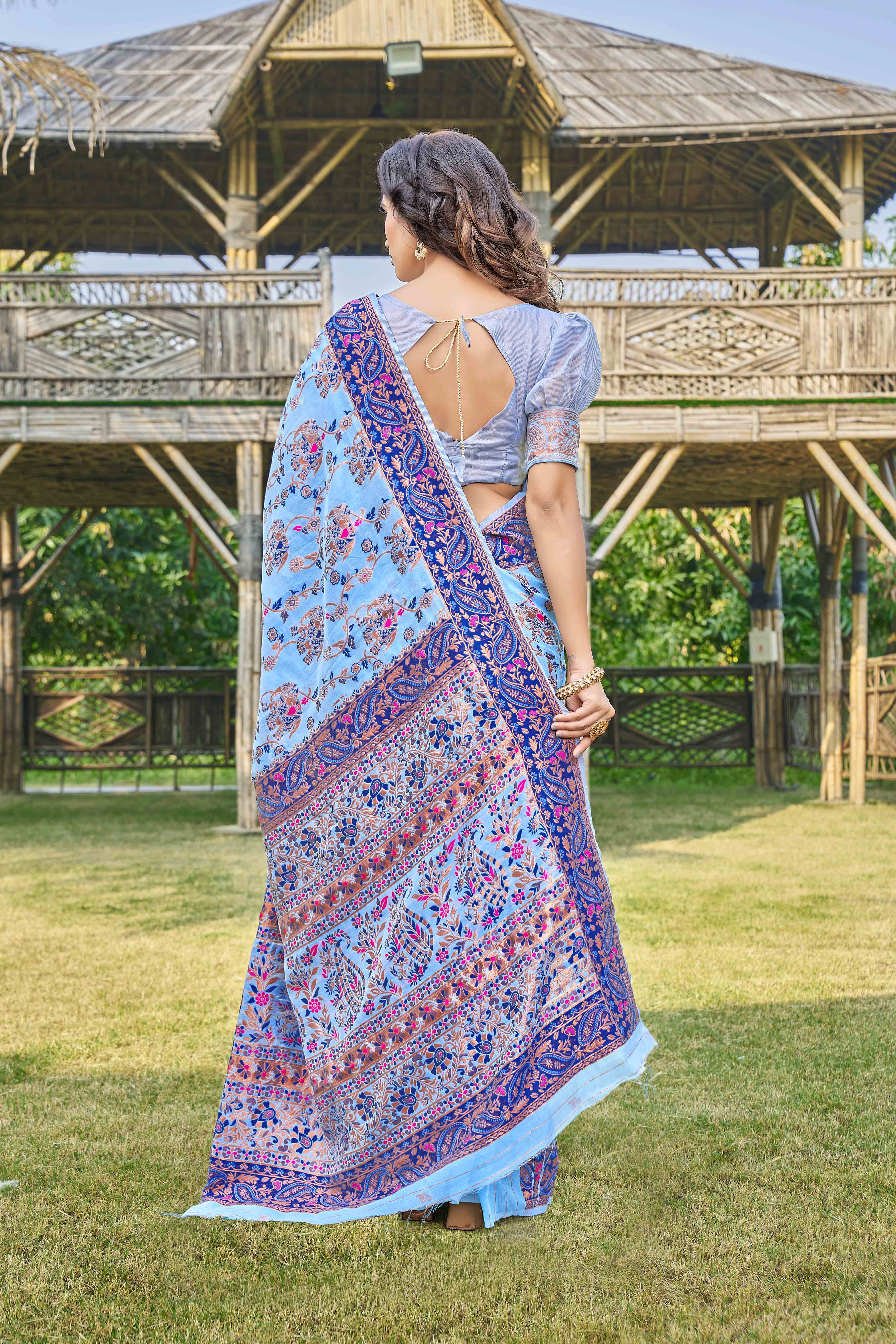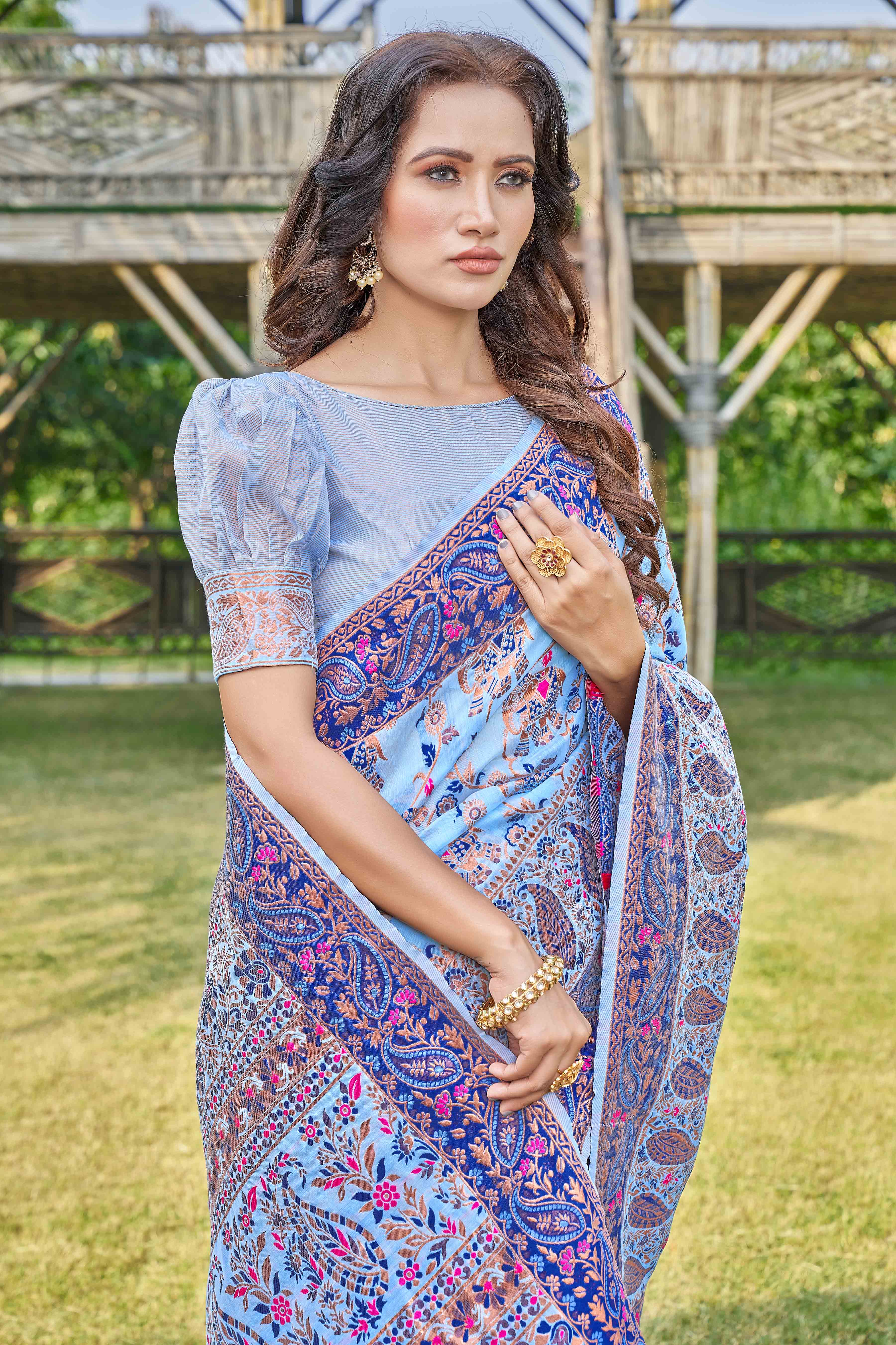 Floral Woven Design Zari Pashmina Saree