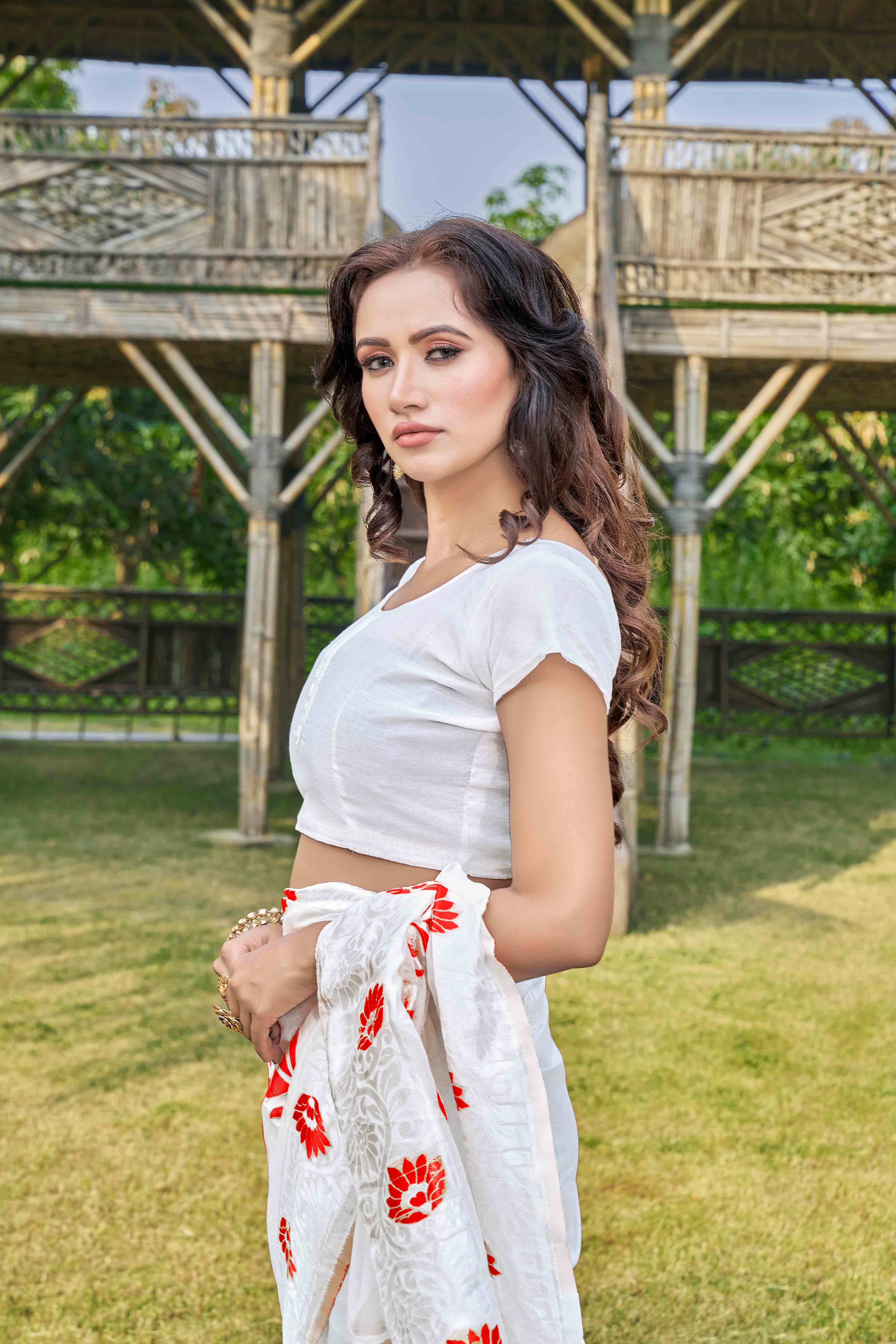 Floral Woven Design Zari Silk Cotton Jamdani Saree