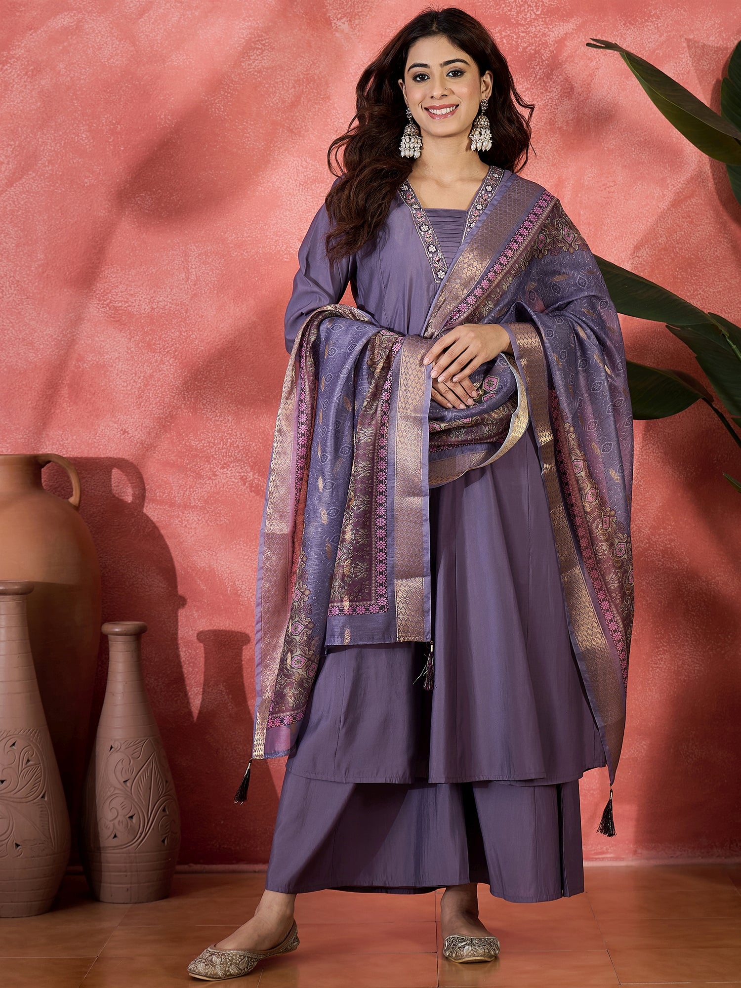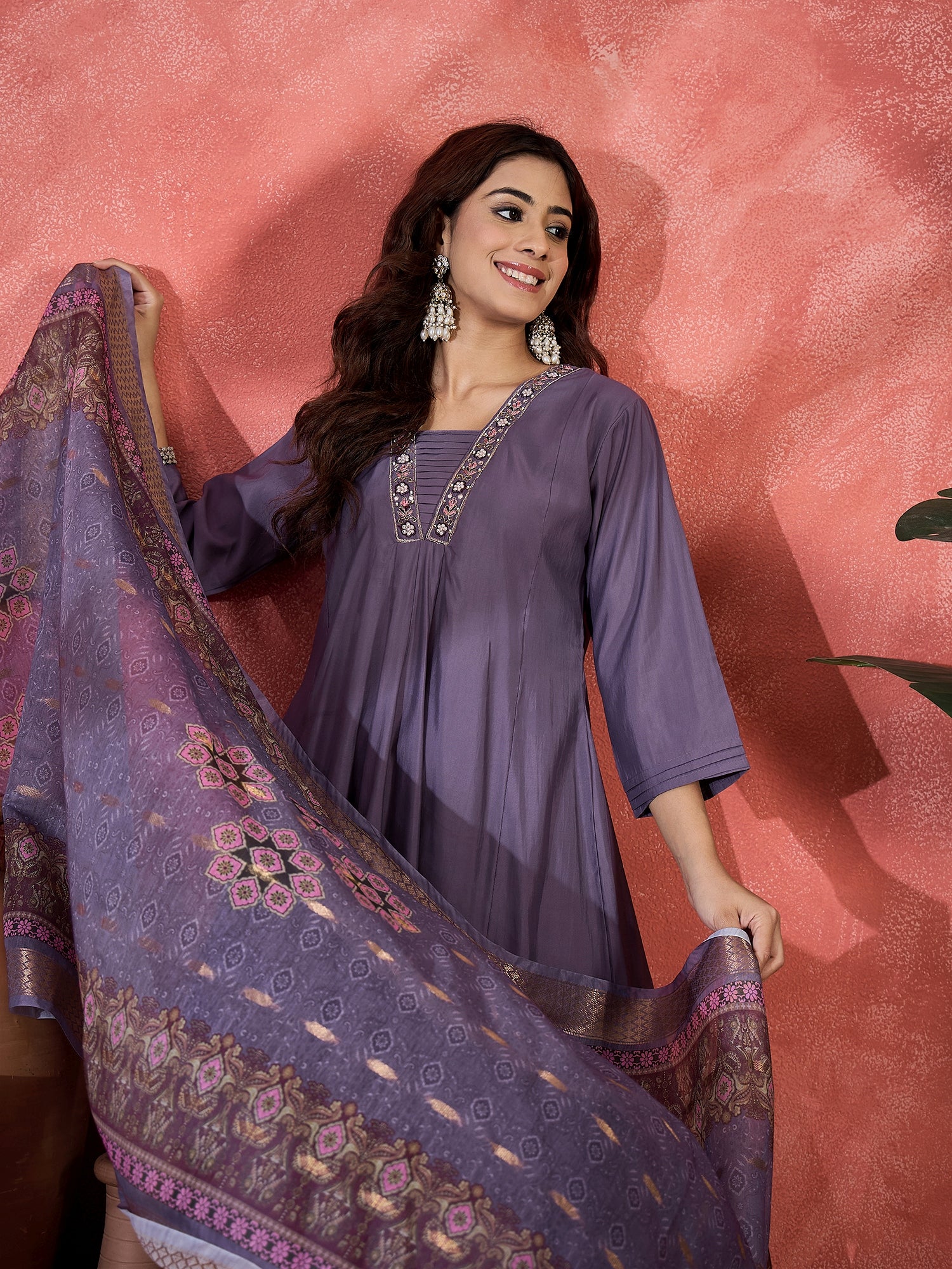 Women Block Printed & Embroidered Anarkali Kurta Set