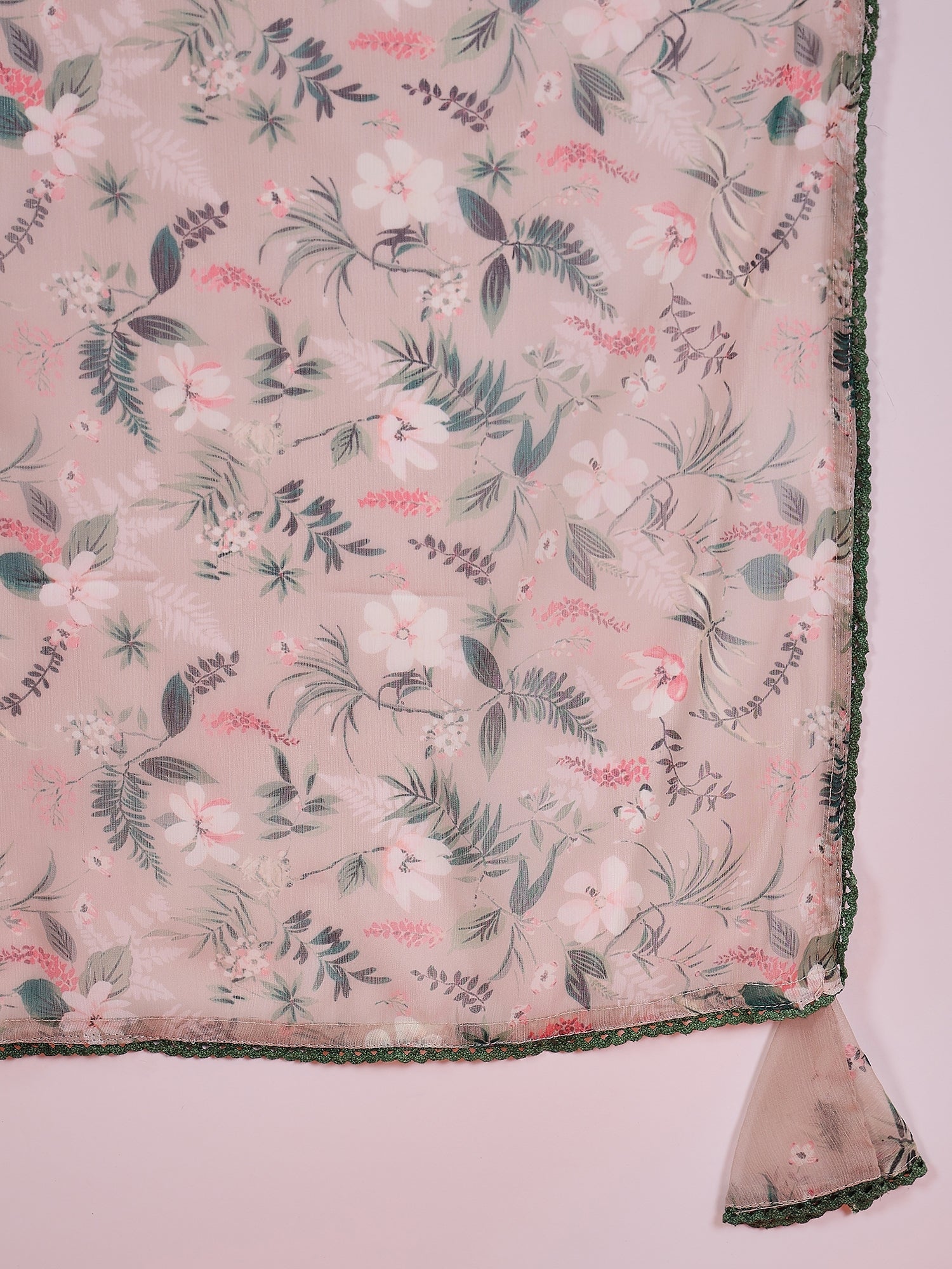 Women Floral Thread Work Kurta with Trousers & With Dupatta